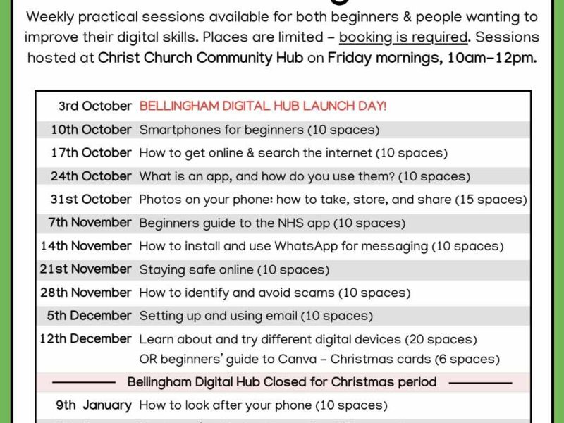 Tailored one on one digital support and help using your digital device and accessing online services. Free support at our drop in sessions!